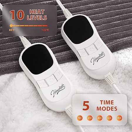 Homemate Electric Heated Blanket Queen Size – 84"x90" Heating Blanket Queen Size Dual Control 1/2/4/6/8 Hours Auto-Off 10 Heat Level Over-Heat Protection Soft Flannel $49.99
