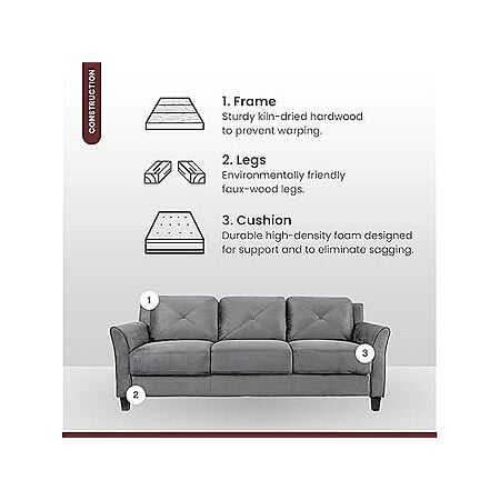 Lifestyle Solutions Collection Grayson Micro-Fabric Sofa, Dark Grey, $160.99, FS for Prime, Woot!