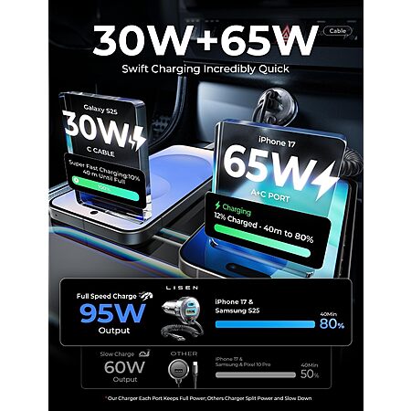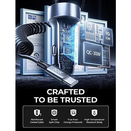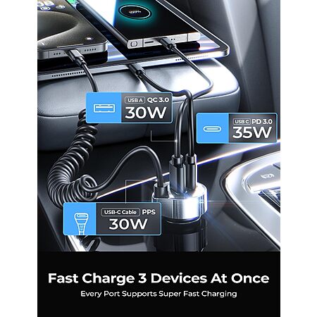 Lisen 35W PD + 30W QC 3.0 Car Charger Adapter w/ 48" 30W Coiled Cable $7.99 + Free Shipping w/ Prime or on $35+