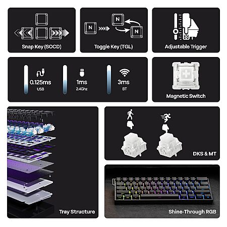 MechLands Aula Mini60 HE PRO Wireless Hall Effect Gaming Keyboard (Black or White) $39.99 + Free Shipping