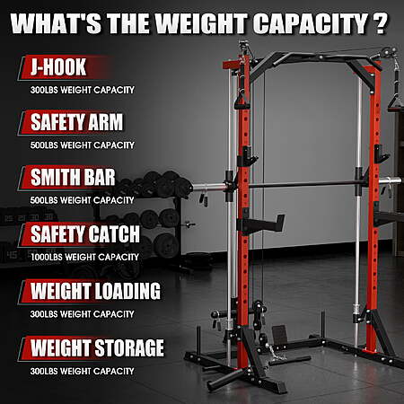 Unleash Your Inner Strength with the Mikolo 7-IN-1 Smith Machine!Experience a complete, full-body workout in the comfort of your own home with this versatile and robust multi-functional squat rack.Key Features: