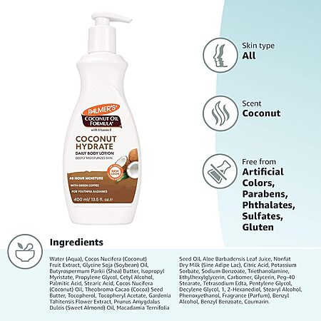 Palmer's Coconut Oil Formula Body Lotion for Dry Skin, Hand & Body Moisturizer with Green Coffee Extract & Vitamin E, Pump Bottle, 13.5 Fl Oz (Pack of 2) $7.3 Palmer's Coconut Oil Formula Body Lotion for Dry Skin, Hand & Body Moisturizer with Green Coffee Extract & Vitamin E, Pump Bottle, 13.5 Fl Oz (Pack of 2) $7.3 Amazon December 20th, 2025 12:27am $17.00 $7.3 Buy from Amazon