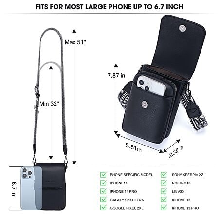 - Compact crossbody design.