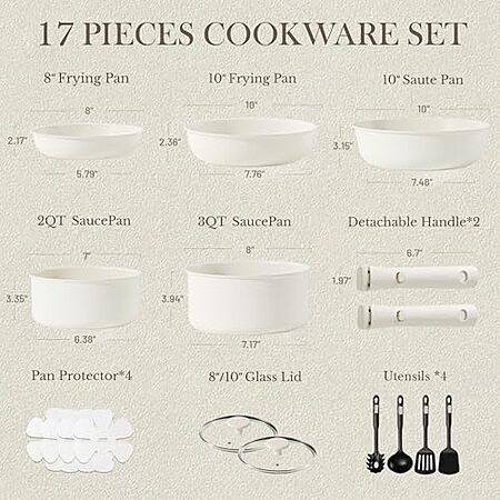 [Prime] $49.99* | 17-pc CAROTE Induction Pots & Pans Set w/ Removable Handle at Amazon