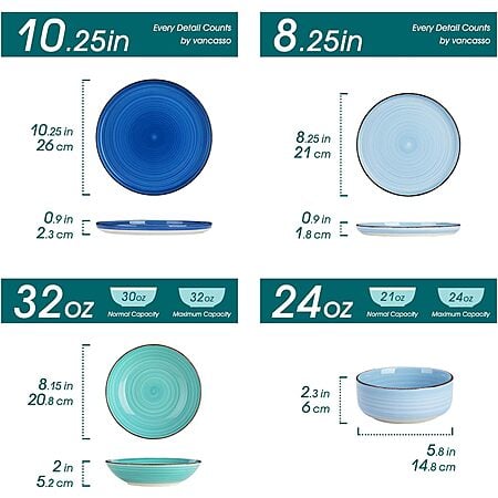 Prime Members: 12-Piece vancasso Bonita Blue Stoneware Dinnerware Set (Service for 4) $27.99, 24-Piece (Service for 6) $54.99 + Free Shipping
