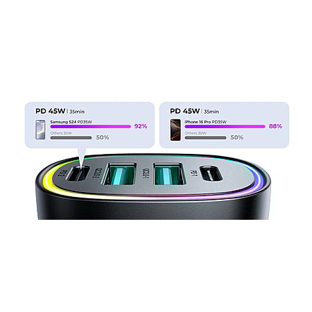 • Dual USB-C & Dual USB-A Ports: Charge multiple devices simultaneously.