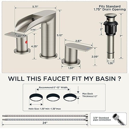 - Waterfall Widespread Faucet: Offers elegance and functionality with its 8″ 3-hole design.