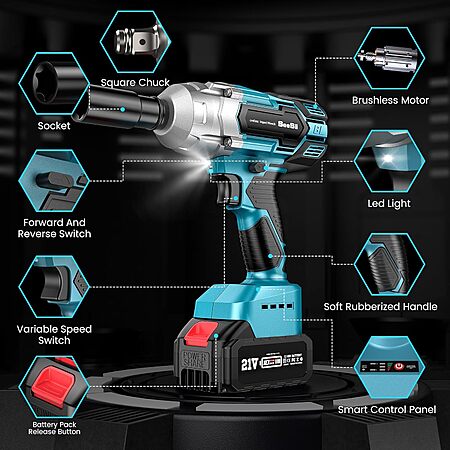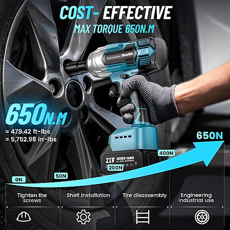 Prime Members: SEESII 1/2" 21V Cordless Brushless Impact Wrench w/ 2x 4.0Ah Batteries (WH700) $53.99 + Free Shipping