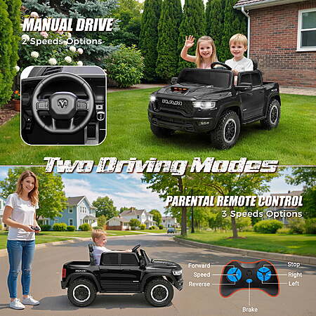 RHO Ram 1500 24V 2-Seater Ride-On Car w/ Remote Driving Mode (Black) $270 + Free Shipping