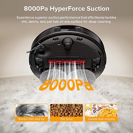 - Powerful 8000Pa Suction: Effortlessly lifts dirt, dust, and debris.