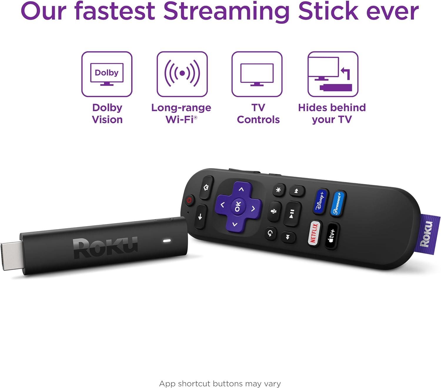 Roku Streaming Stick 4K | Portable Roku Streaming Device 4K/HDR/Dolby Vision, Roku Voice Remote, Free & Live TV.