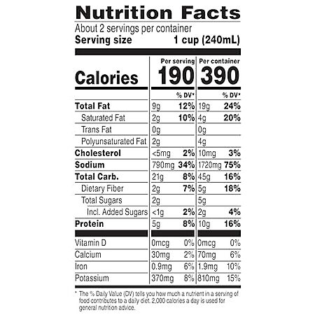 - Each can contains a generous 18.8 oz serving.