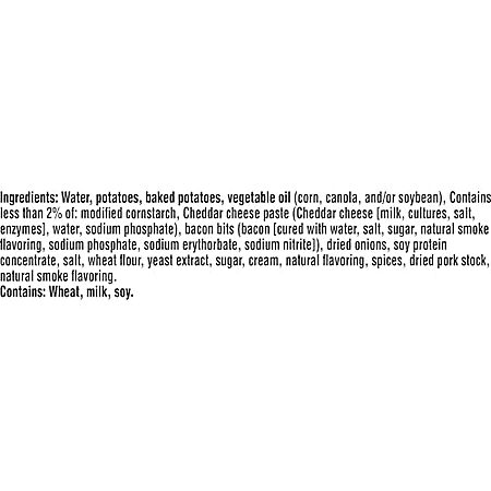 - Indulge in the comforting flavor of Baked Potato with Cheddar and Bacon Bits.