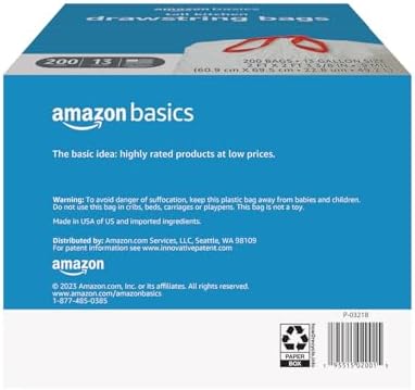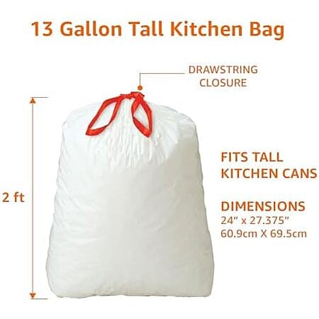 Amazon Basics Tall Kitchen Drawstring Trash BagsKeep your kitchen clean and your life simple with these reliable trash bags.
