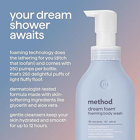 [S&S, AC] $9.37* | 2 × 13.5-Oz Method Dream Foam, Foaming Body Wash (Sea Spray + Salt Air) ($4.69 each) at Amazon