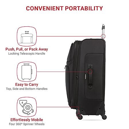 Explore the World with SwissGear Sion Luggage!Embark on your next adventure with the reliable and stylish SwissGear Sion 3-Piece Luggage Set. This softside expandable luggage set includes: