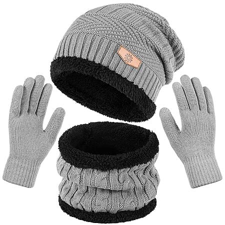 - Includes a beanie hat, neck warmer, and gloves