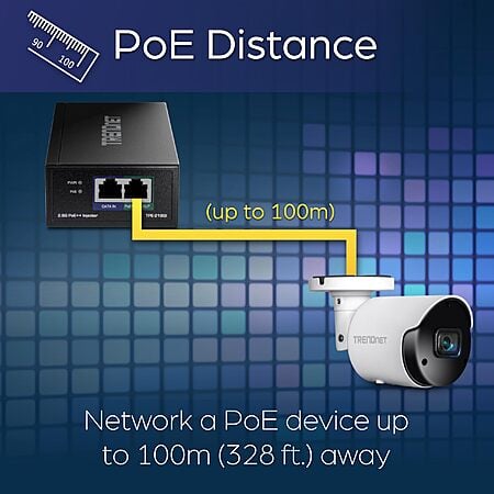 - Effortlessly connect the 2.5G PoE++ injector to a non-PoE switch and extend your network reach up to 100 meters (328 ft.) with an Ethernet cable carrying both data and power to your PoE, PoE+, or PoE++ device.