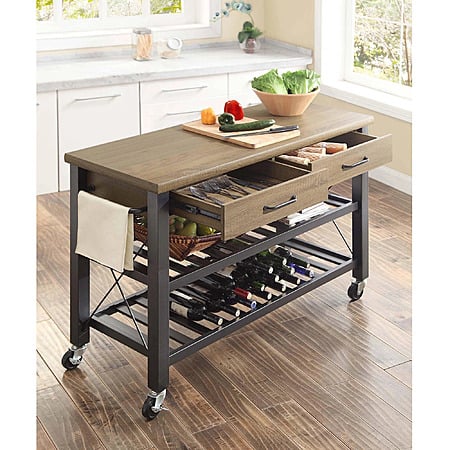 Whalen Santa Fe Kitchen Cart with Metal Shelves and TV Stand Feature $60