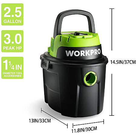 WORKPRO Wet Dry Vacuum 2.5 Gallon 3 Peak Horsepower Portable Shop Vacuum Cleaner $36.99