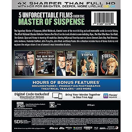 [YMMV, AC] $16.79 | The Alfred Hitchcock Classics Collection: DigiBook, Rope, The Man Who Knew Too Much, Torn Curtain, Topaz, Frenzy (4K Ultra HD + Blu-ray + Digital 4K) at Amazon