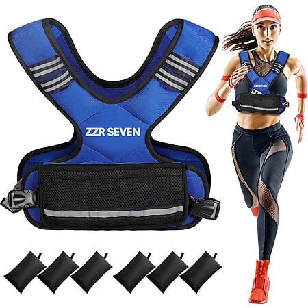 ZZR SEVEN Women's and Men's Adjustable Weighted Vest w/ 6 Iron Sand Weights (Black or Blue, 4-10lb) $18.99 + Free Shipping